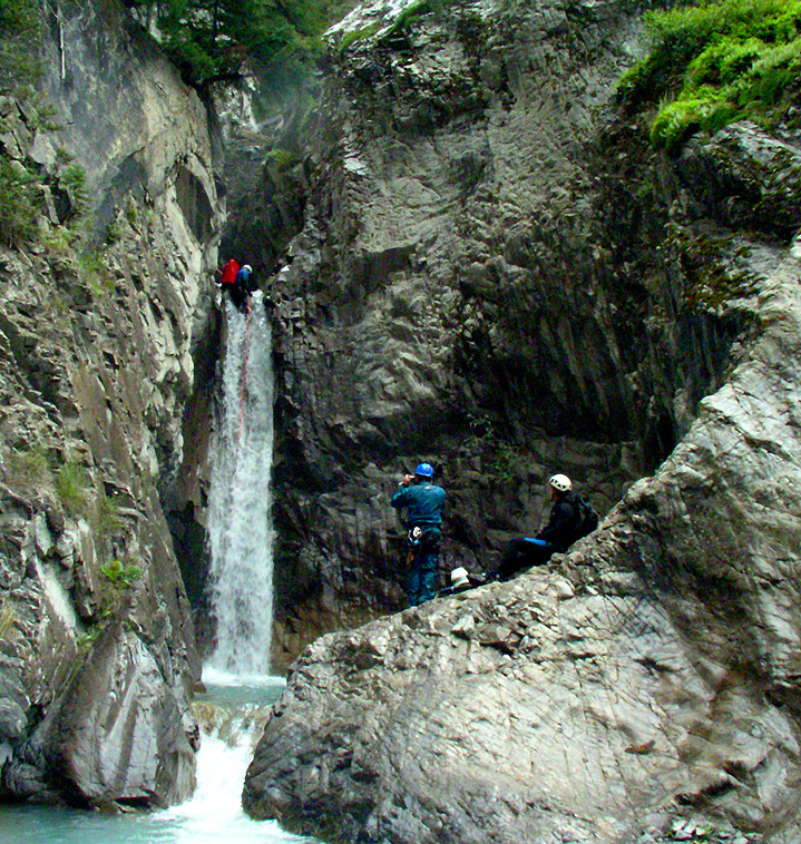 - Die Guides erklären euch, wie ihr euch sicher auf der Tour fortbewegt: Laufen in der Strömung, die korrekte Sprung- und Rutschhaltung, und auch das Abseilen wird geübt. Dann gehts los!